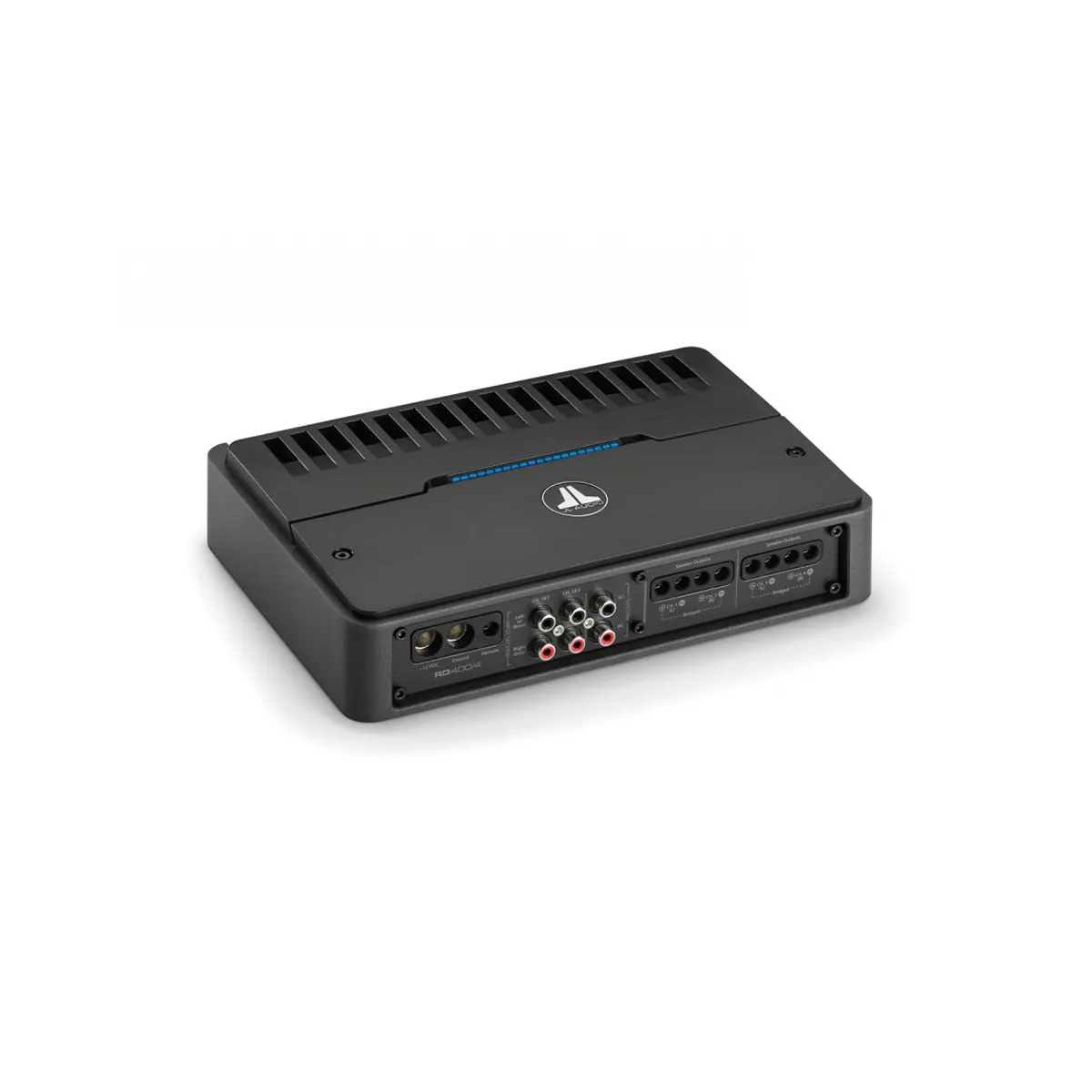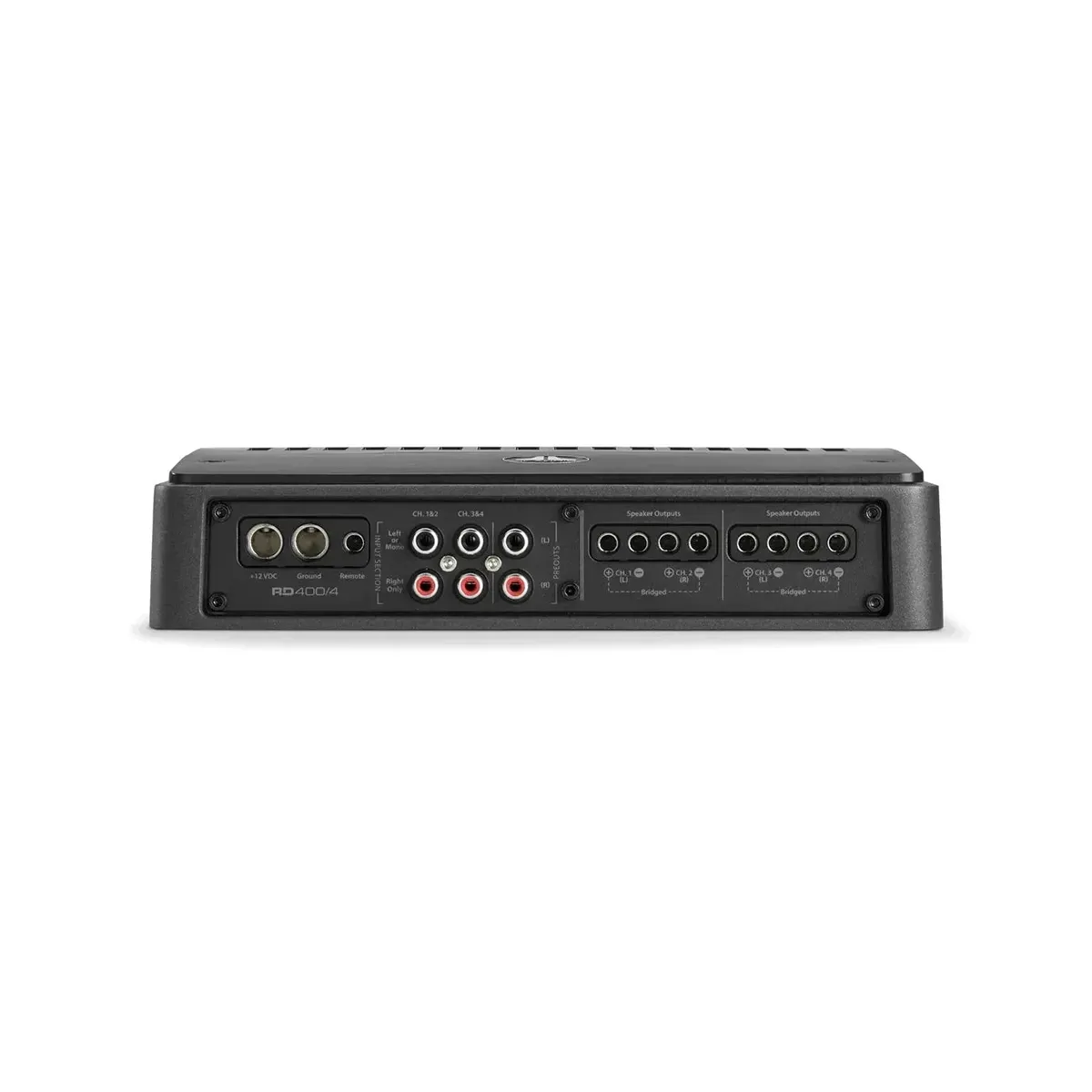 Amplificador de rango completo de 4 canales, 75w RMS por canal a 4 ohms, 100w RMS por canal a 2 ohms, 200w RMS en puente a 4 ohm, linea intermedia