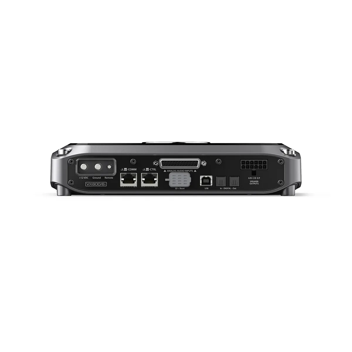Amplificador de 6 canales con DSP, 6 entradas analogicas (RCA o Nivel Alto), Entrada digital Toslink, 75w RMS por canal a 4 ohms o 100w RMS por canal a 2 ohms, 200w RMS en puente a 4 ohms, 2 salidas RCA procesables, salida digital Toslink, linea high end