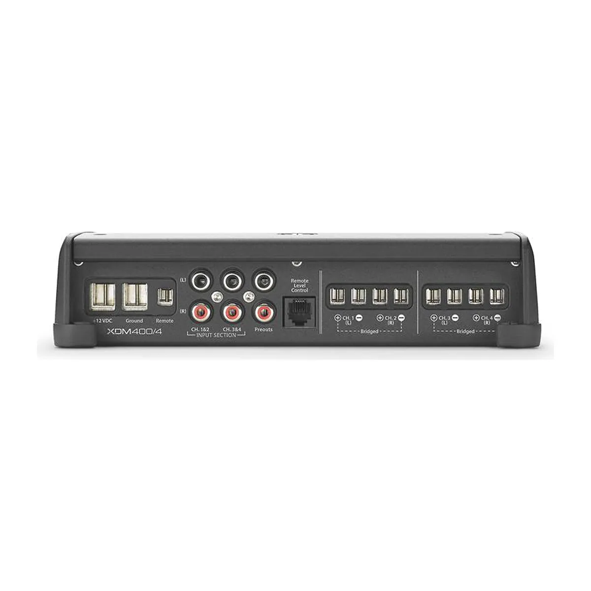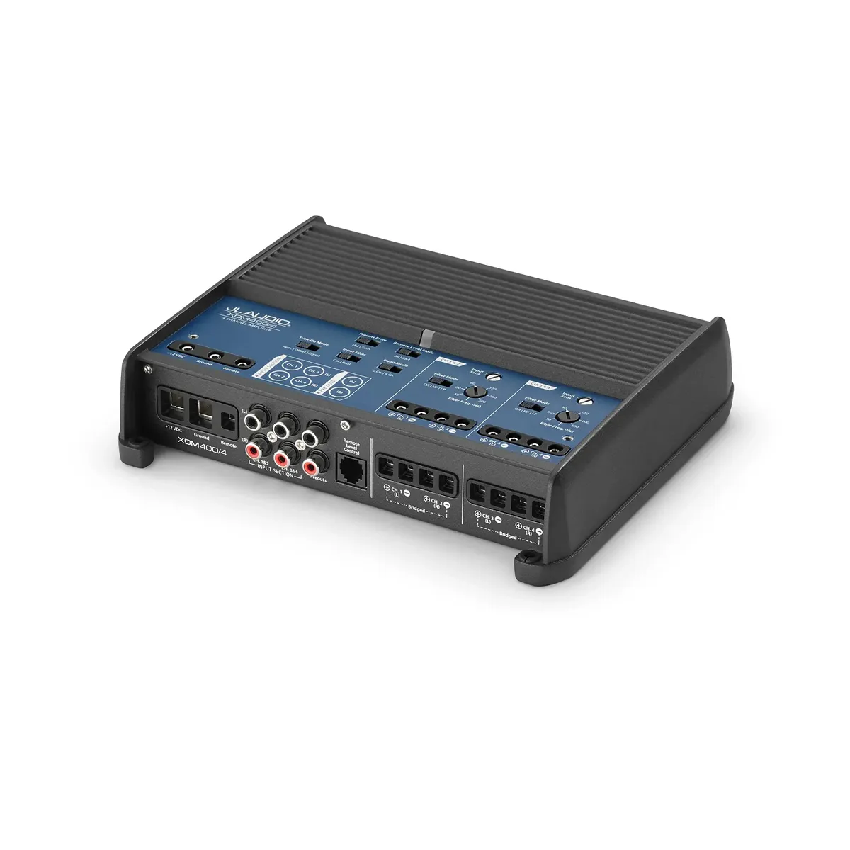 Amplificador de rango completo de 4 canales, 75w RMS por canal a 4 ohms, 100w RMS por canal a 2 ohms, 200w RMS en puente a 4 ohm, linea marina-automotriz