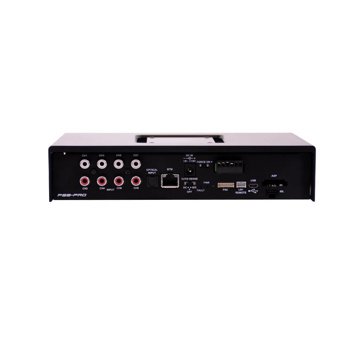 Procesador digital de audio de 2 etapas (integracion y calibracion), entrada digital toslink y coaxial, 8 entradas de alto nivel y RCA, 8 salidas RCA